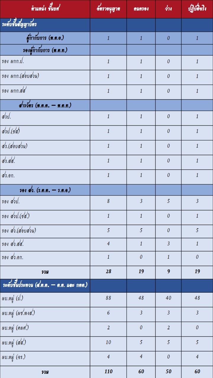 O2ข้อมูลผู้บริหาร อัตรากำลังและพื้นที่รับผิดชอบ